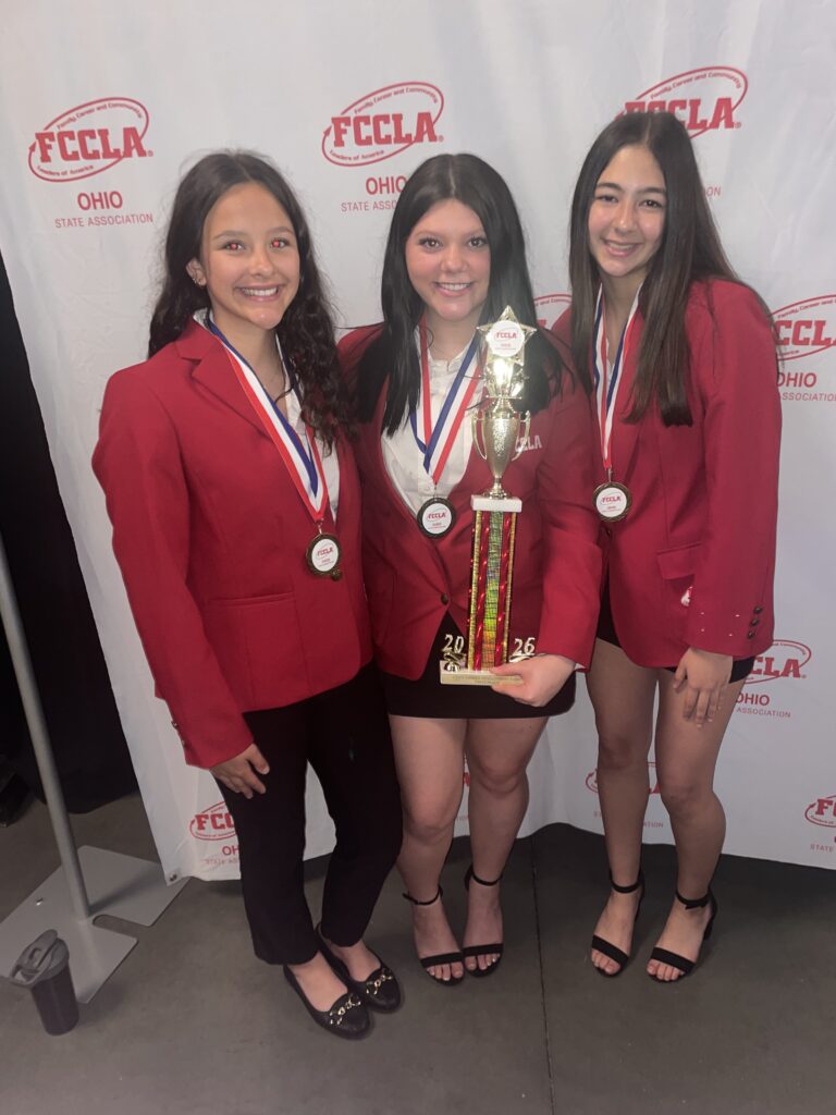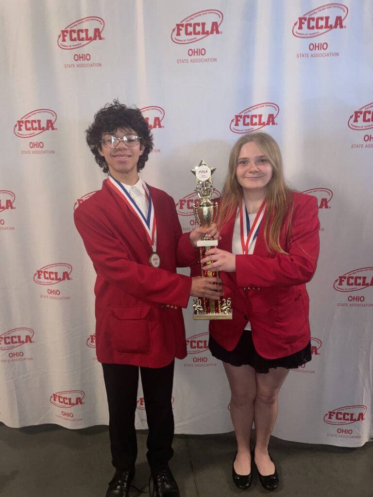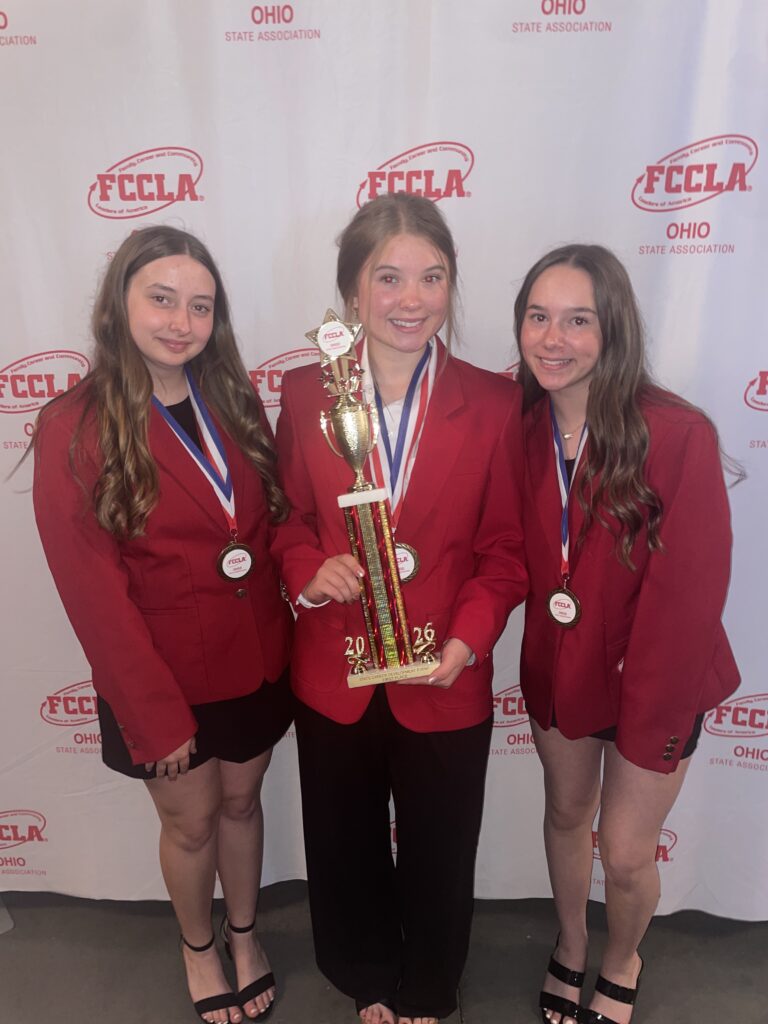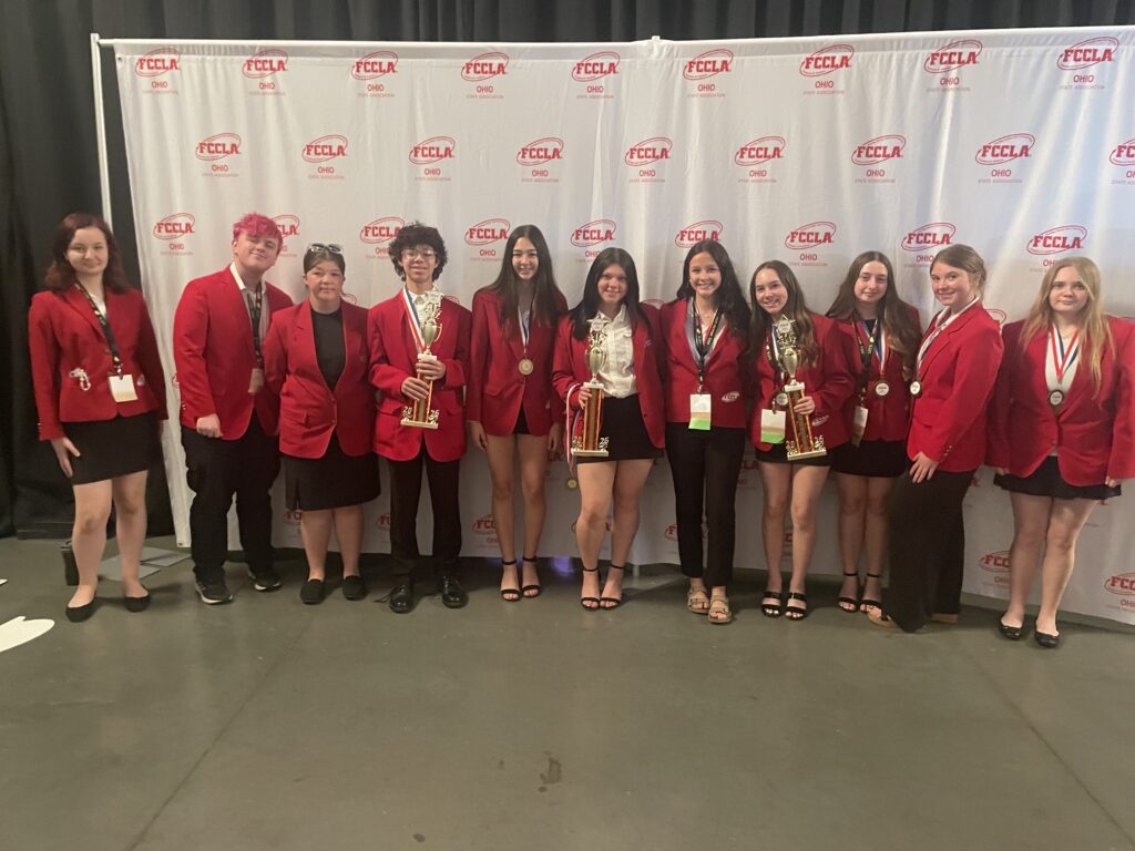 Congratulations to the following FCCLA Members who competed at the FCCLA State Leadership Conference last week. Claire Holscher, Bella Matos, and Lilli Niswonger were 1st place in Professional Presentation. Leigha Larger, Rylinn Bruner, and Chloe Cantrill were 1st place in Sports Nutrition. Kayson Hines and Teagan Rauch were 1st place in Entrepreneurship. Vera Kelly was 4th in Job Interview. In addition, Claire, Bella, Lilli, Leigha, Rylinn, Chloe, Teagan, and Kayson all qualified for the National FCCLA Leadership Conference in Washington DC this July!